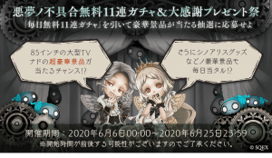 - 毎日無料11連ガチャ&大感謝プレゼント祭