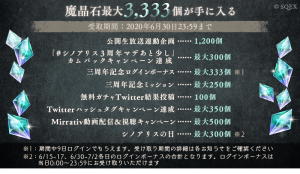 6月4日(木)に配信した公式生放送企画のプレゼントを含め、最大で「魔晶石3,333個」が手に入る各種キャンペーンやイベントを開始。
