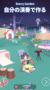 「ほしいろの庭」は、可愛い動物たちとの生活を楽しみながら夜空を作っていくガーデンシミュレーションゲームです。