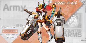 「Ujoy Games」の、兵器を擬人化したスマホ向け美少女RPGゲーム「カウンター・アームズ」。 陸・海・空各フィールドの兵器がそれぞれのタイプの「戦姫」となり、あなたと肩を並べて共に戦う。