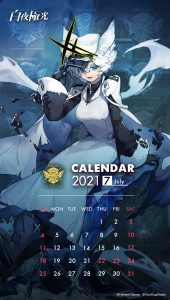 7月のカレンダーを配布!キャラクターは、啓光連邦の情報長官「フィリス」