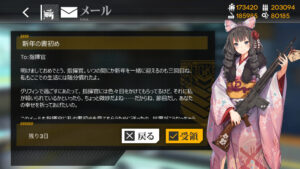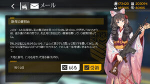 このメールも指揮官に私の書初めを見てもらうために送ったの。世界がこうなっちゃう前、遥か遠くの東の国では、お正月にお目出たい言葉を書くっていう習慣があってね。