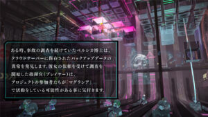 本作は“ドルフロ世界の過去の事件をひも解く”といった方向性で、その舞台は教授(指揮官のこと。主人公)自らの意識をアップロードしたスーパークラウド「マグラシア」、つまり電脳空間です。