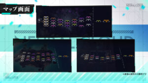 バトルは、マップがランダム生成される自動戦闘主体のシミュレーションであることに加え、ステージ進行中に踏んでいくさまざまな「マス」に応じて、人形の強化や回復など多種多様な効果がえられます。