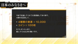 ドルフロでは2022年8月1日にサービス4周年を迎えることを記念して、現在ゲーム内では周年ログインボーナスが実施中。