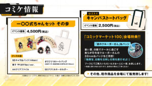 目玉は新規「一○○式ちゃんグッズセット その参」や既存商品の販売と会場で展示されるニューラルクラウドの広告の予定。