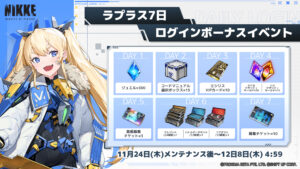 「勝利の女神:NIKKE」にて、11月24日からストーリーイベント「Hightech Toy」開催中!特別ログインボーナスもありますので、ぜひ参加しよう!また、新SSRニケ「ラプラス」PU募集開催中。