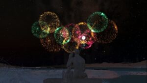 花火エフェクトは単なる視覚効果であり、音やステータスへの影響はありません。