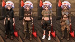 MOD作成者が違っていたりするので、キャラクターのモデルとバニラ・他MODの衣類が干渉したりしなかったり、専用のユニークセリフがあったり無かったり、日本語訳が無かったりします。