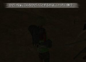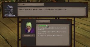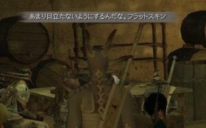 宿屋にいるとシェクウヨに絡まれます、フラットスキンを見下してそうな事を言ってきますが逆に質問すると今のシェク王国の状況を親切に教えてくれます。