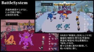 武器熟練度・術熟練度があり、好みの武器や術を使い込む程、ヒット回数や効果が高まります。武器熟練度が上がると、必殺技を習得。戦い方に応じたパラメータが上昇。どの武器を装備・どの術を習得させどう育てるのも、誰を仲間にして一緒に冒険して育てるのも、自由です。