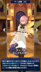 これは、リズムゲームでノーツに合わせてタップして行くほか、FGO的なシステムとしてマスタースキルやコマンドによるコスチュームチェンジなども盛り込まれています。