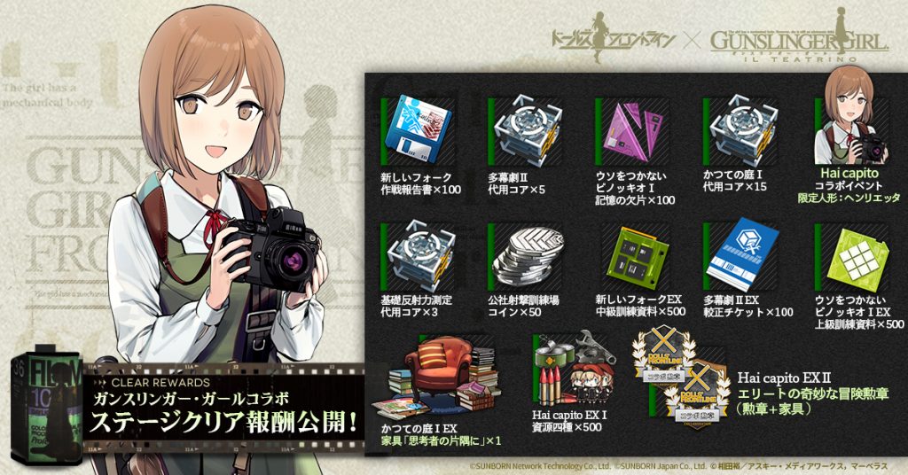 ガンスリンガー・ガールコラボのステージクリア報酬の紹介です。
