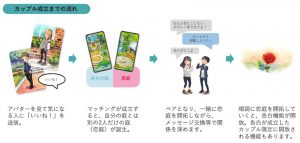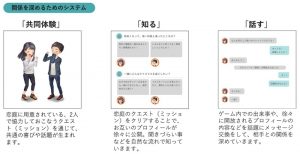 恋庭は、マッチングした相⼿と⼀緒にゲームを進⾏することで、お互いのことを少しずつ、深く知ることができるように設計されており、たとえオンライン上であっても、より親密な関係を築くことが可能。