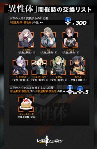 交換できる☆5人形は下図をご確認ください。#ドルフロ#異性体 pic.twitter.com/rlGljzqRk5— ドールズフロントライン公式 (@GirlsFrontline) November 20, 2020