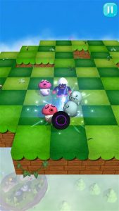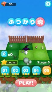 ルールは簡単で、 画面スワイプで可愛いオバケを操作してモンスターに体当たりしよう。全ての敵をステージ外に落とせばステージクリアとなる。