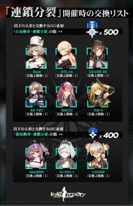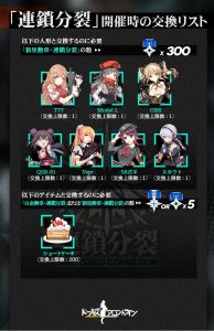 大型イベント「連鎖分裂」におけるドロップ保証内容の詳細、および交換リストの紹介です。