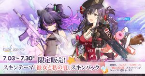 ドールズフロントラインにて、夏を先取りした水着のスキンガチャ「彼女と私の夏」と家具「ジワタネホ」が7月3日開催!さらに、スキンパックもショップで販売!