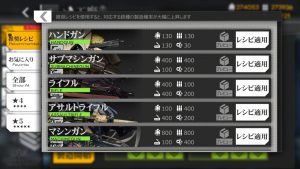 今回の新人形はAR・SMG・RF・MGと分かれているのレシピをわけて回します