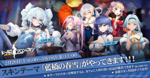 ドールズフロントラインにて、新たなスキンガチャ「藍橋の春雪」が開催!スキンパックも販売!どのスキンにも限定ボイス付き!☆5家具「瑞雪苑」も実装される