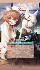 指揮官、スマホ&PCの壁紙として使える2022年3月のカレンダーを用意致しました🎁今回は「ドールズ・アーミー」のクラスメートでもあるモリスとのツーショットです✨