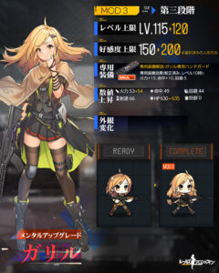 ガリル対象の人形をLV100、5Link、好感度100以上にし、記憶の欠片を準備してお待ちくださいませ。#ドルフロ pic.twitter.com/1L1YU7Fua5