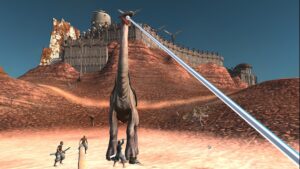 予備動作の後、通常攻撃の60%の威力・4回ヒット・攻撃判定の間隔が短いビームで薙ぎ払います。