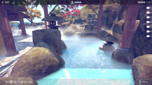 風情が感じられる温泉は7箇所のカメラでそれぞれの美しい景色を堪能できます。それぞれ方向性が異なるリラックスできる音楽が収録されている他、ogg、wav、mp3形式の音楽ファイルで自便が好きな音楽を追加可能。デスクトップの壁紙としても設定可能であるとのことです。