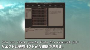 クエストは研究リストから概要を確認できます。クエストを達成するとマシニストから対応する研究素材を受け取ることができて、そのクエストに関する内容が書かれた「テックハンターズノート」を作成できるようになります。このノートを納品するのがマシニストクエストです。